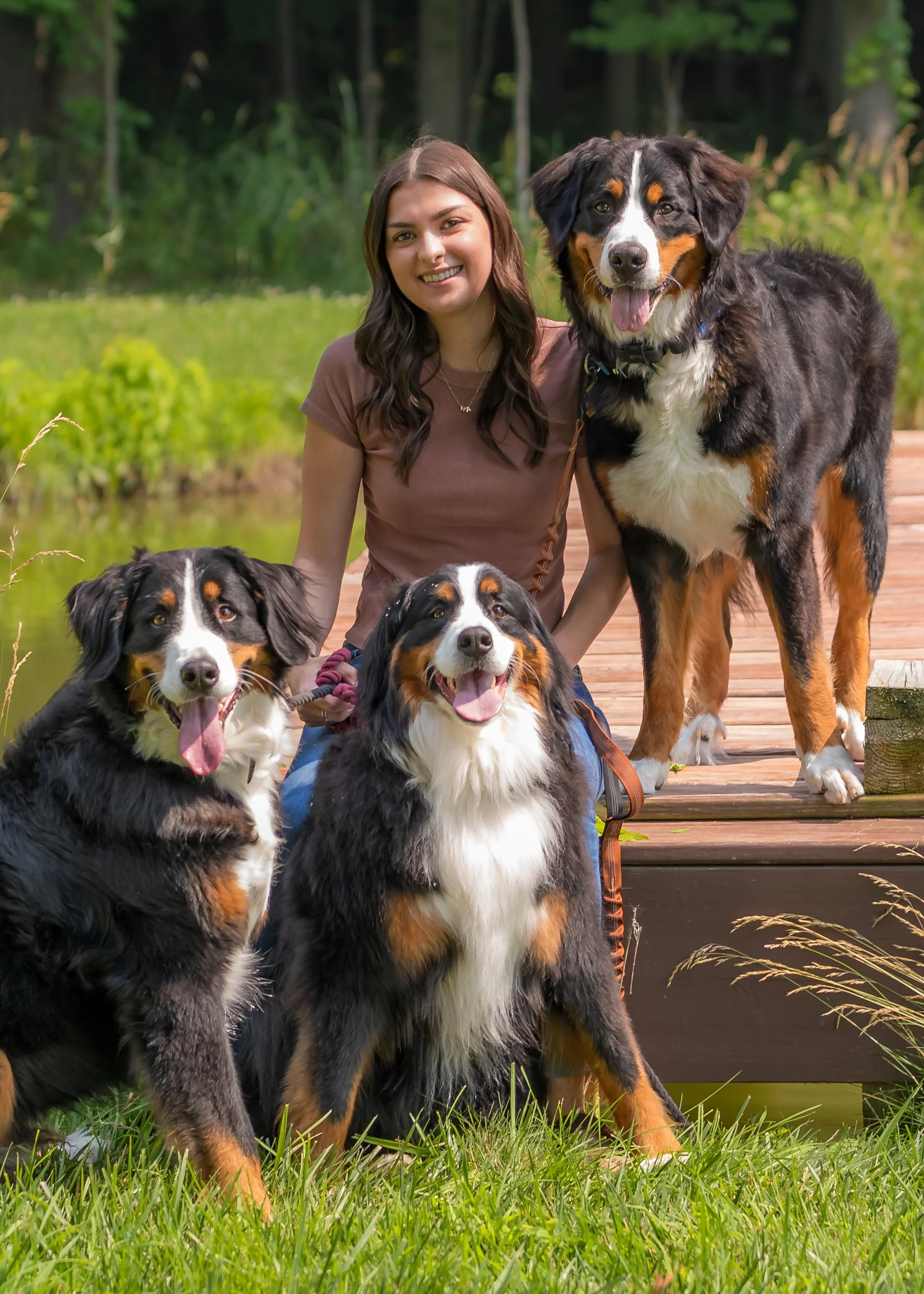 Outside of the clinic, Abby enjoys exploring Northern Michigan's lakes and rivers through paddleboarding and kayaking. She also values time spent with her family. Abby and her significant other, Gabe, share their home with a lively pack that includes three Bernese Mountain Dogs—Baxter, Mack, and Rory—as well as two cats, Roscoe and Yoshi.